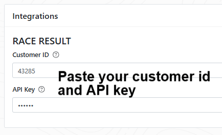 * Provide your RACE RESULT customer ID and API key in the settings of your RACEMAP account under integrations: <https://racemap.com/admin/account>
